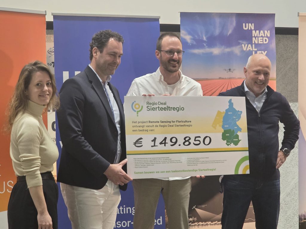 De aanvraag Remote Sensing die door de RegioDeal is goedgekeurd, is ingediend door EBDB, UMV en NL Space Campus. Dus zonder Keukenhof. Remote Sensing gaat nu door met de ziekteherkenning en governance vraagstukken (van wie is de data etc). Keukenhof wil een separaat initiatief opzetten met een ‘klasje’ van telers die worstelen met de vraag ‘Ik heb een drone en nu?’.